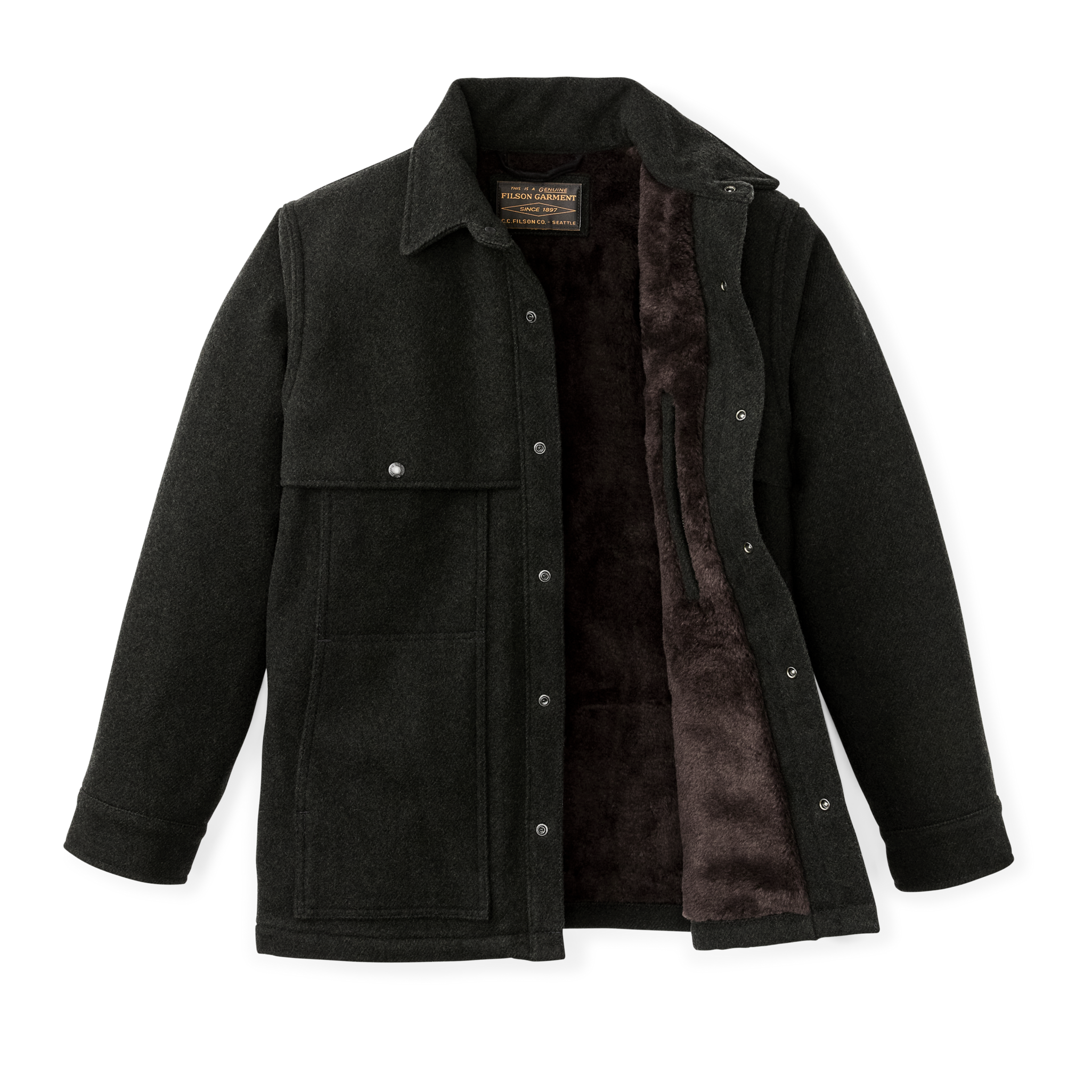 Our Lined Mackinaw Wool Cape Coat is a limited-edition version of an archival classic. re-engineered for comfort in frigid weather. Our iconic wool and warm linings excel at trapping warm air next to the body. The body is lined with high-pile fleece for outstanding thermal retention with minimal weight. The arms feature polyester insulation that slides easily over layers. The shoulder cape adds a second layer of weather protection where it’s needed most. The snaps used for the front closure and adjustable cuffs are nearly unbreakable and are easy to operate even while wearing gloves.