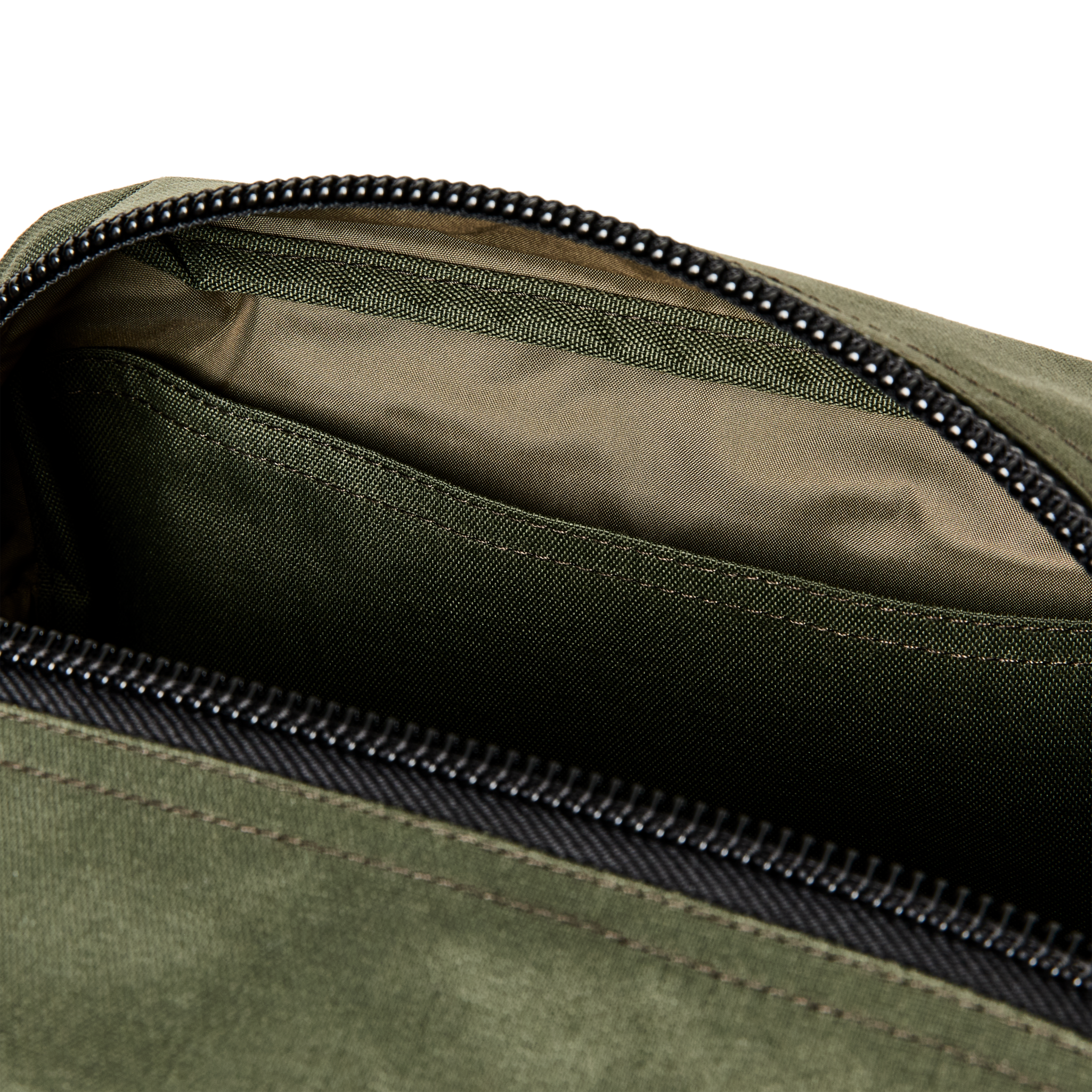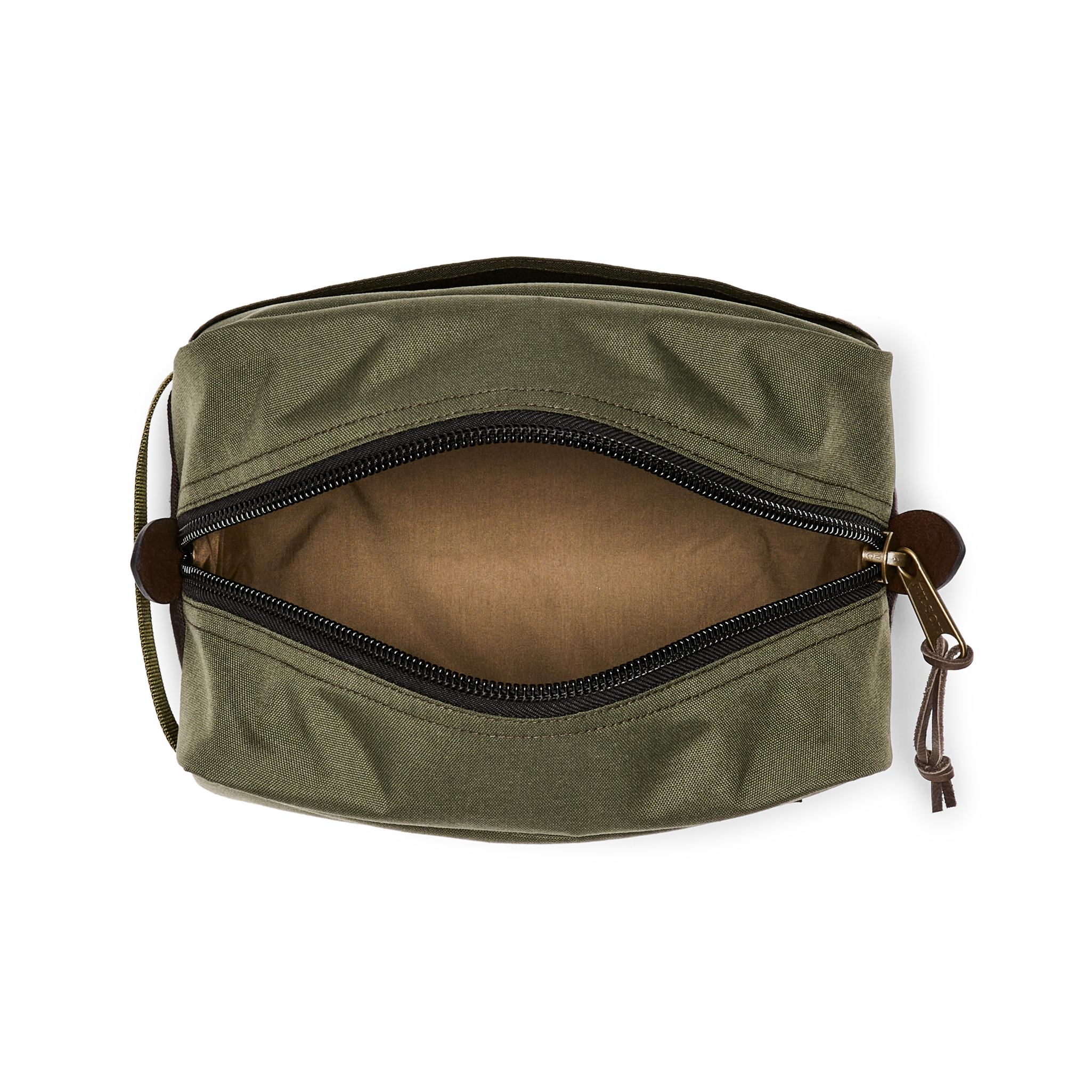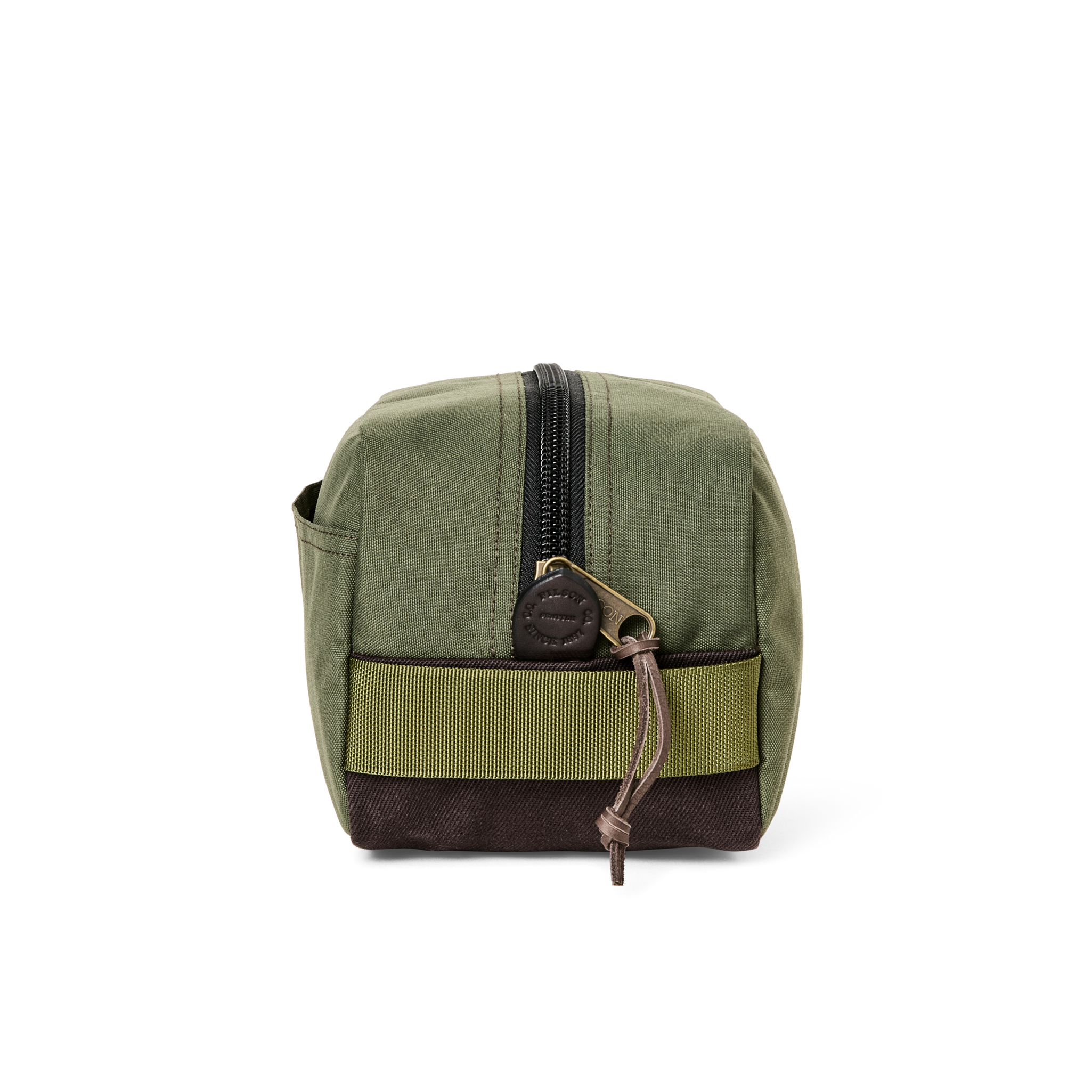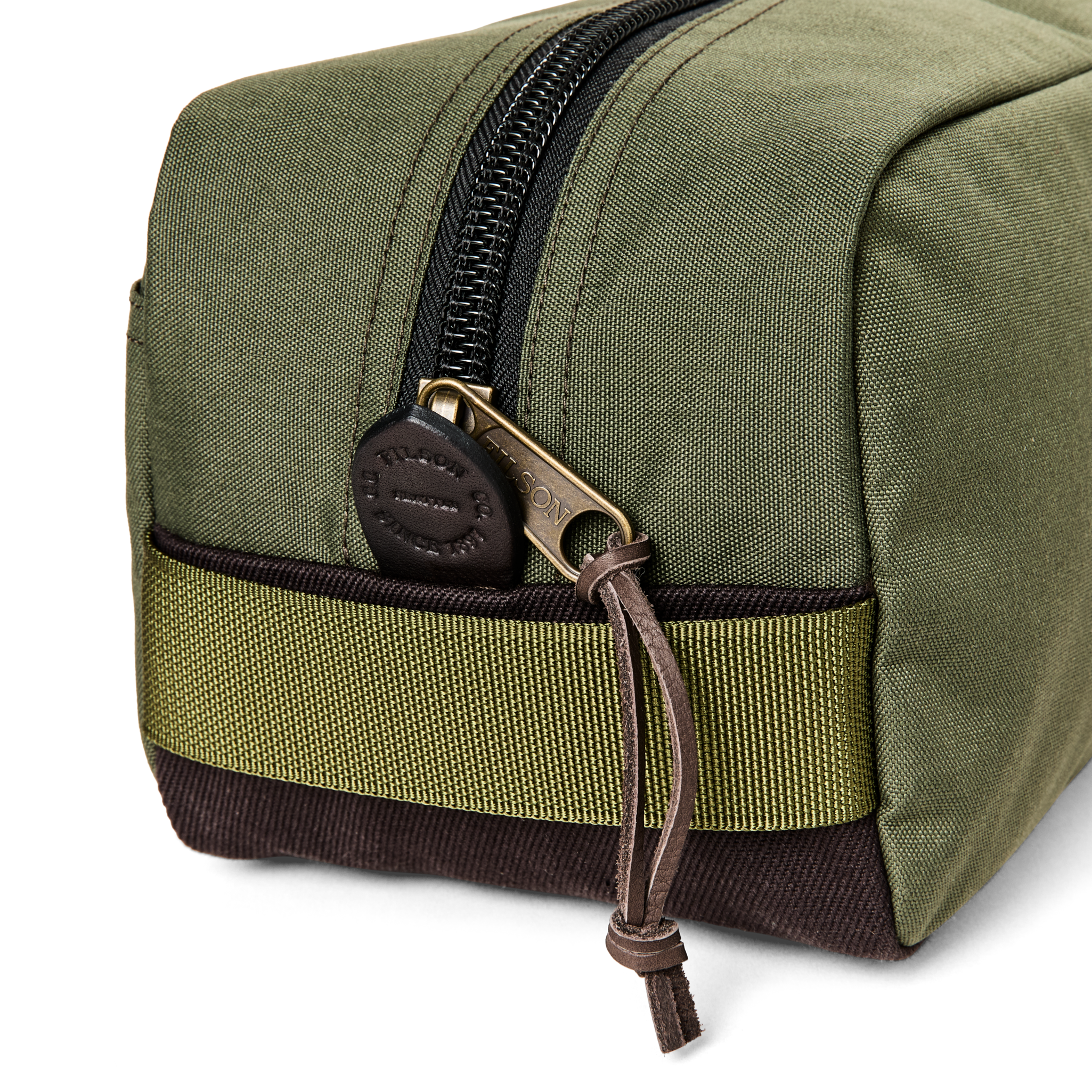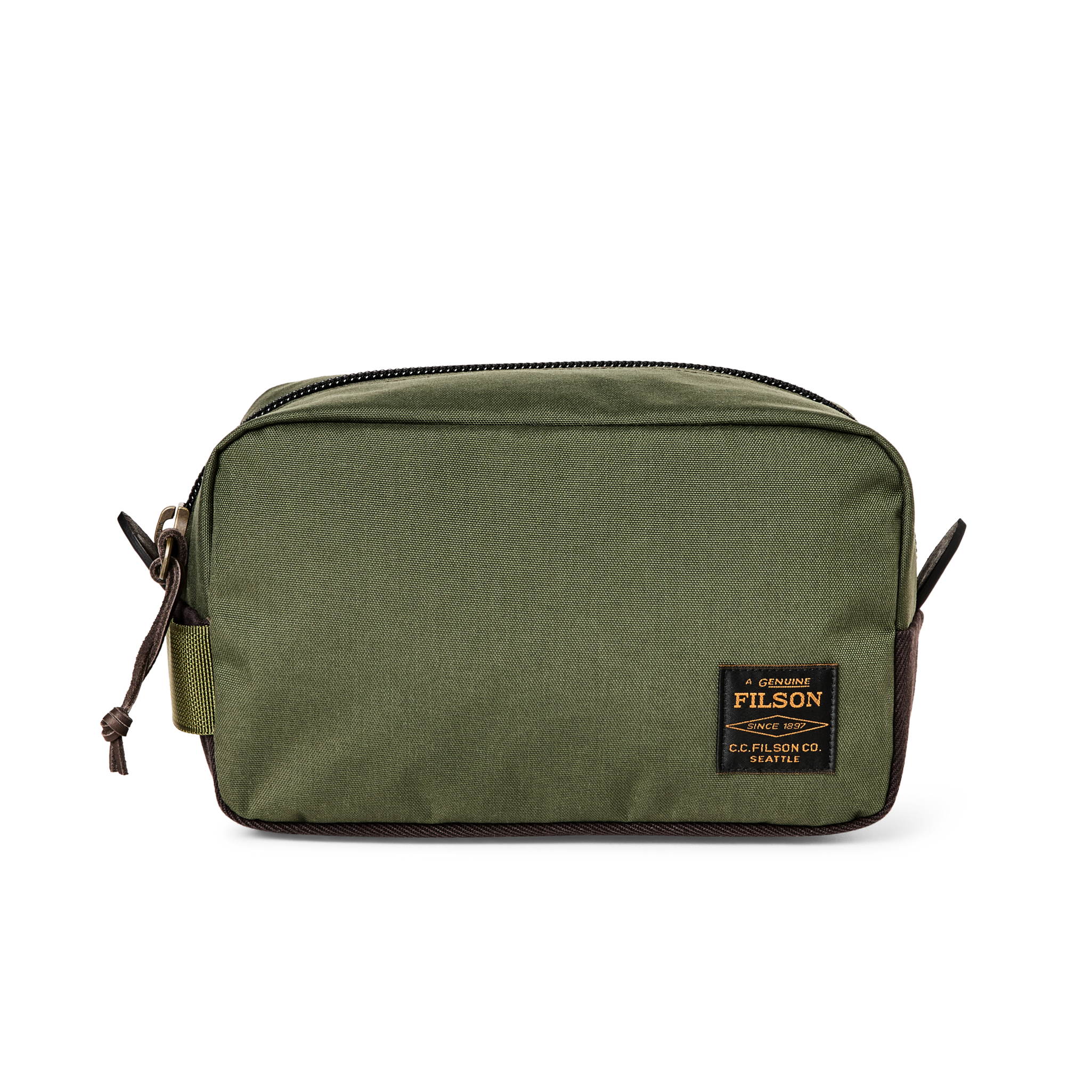 This lightweight Travel Pack is made with lightweight. tear-resistant nylon and reinforced with Filson signature Rugged Twill across the base.