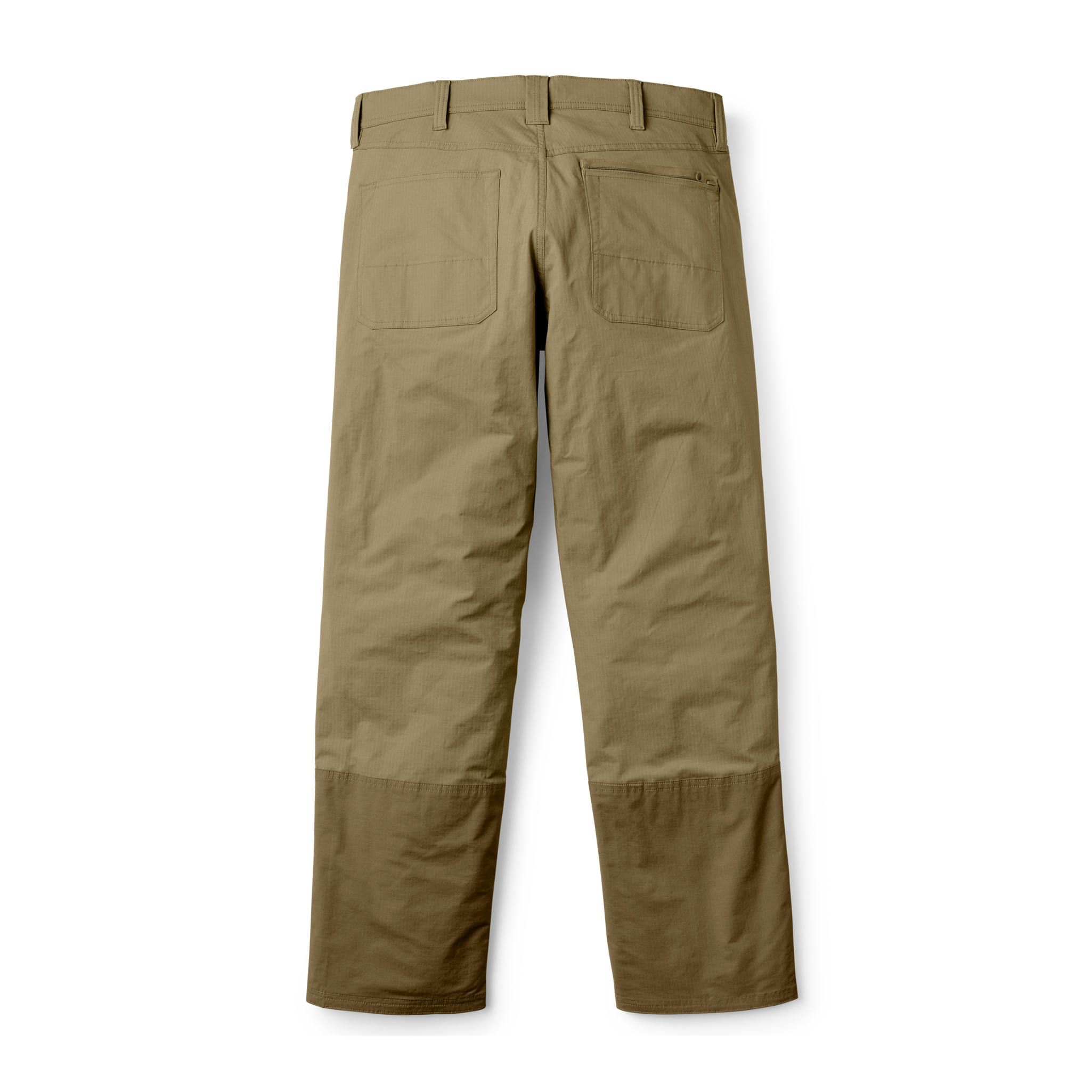 Ideal for the training season. early season hunts in light cover or trekking through grasslands. our Upland Brush Pants are made from a lightweight cotton/nylon ripstop with built-in stretch for ease of motion. The fronts and lower backs are reinforced with an extra layer of the shell fabric for added durability. Angular front pocket entries provide ease of access to contents. Patch rear pockets. with a zipper closure on right side to secure valuables. Zipper fly and metal wreath-button waist closure.